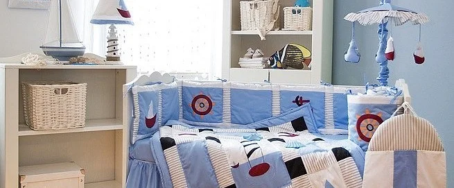 Dálkami vonící kombinace modré, bílé, červené a proužků. Vyšívané motivy loďky, kormidla, kotvy a majáku jen povzbudí fantazii Vašeho malého dobrodruha. Tento stylový set naleznete na www.madeforbaby.cz