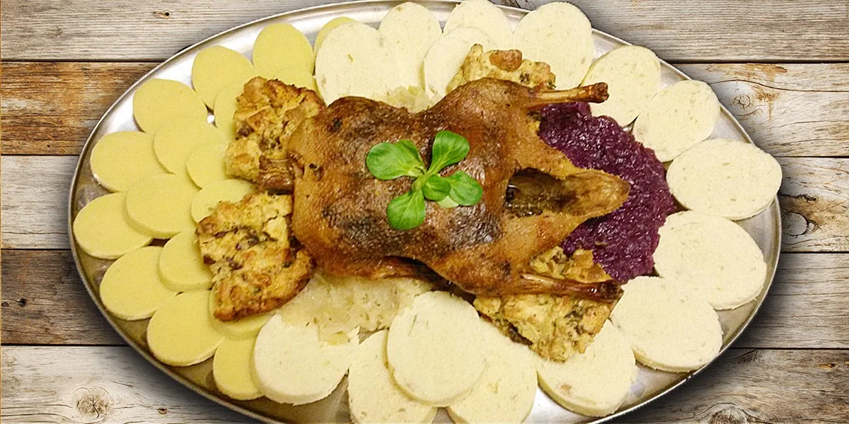 Na celou pečenou kachničku s dvěma druhy zelí a knedlíků se přijďte vynadívat do Restaurace Pastouška s dalšími třemi kamarády. Nedívejte se na ni ale příliš dlouho, protože jinak vystydne a vaši spolustolovníci vám pěkný kus ujedí.