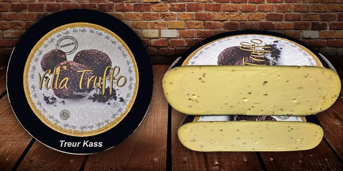 Vyrobeno z kravského mléka (48 % t. v. s.) s kousky černého lanýže