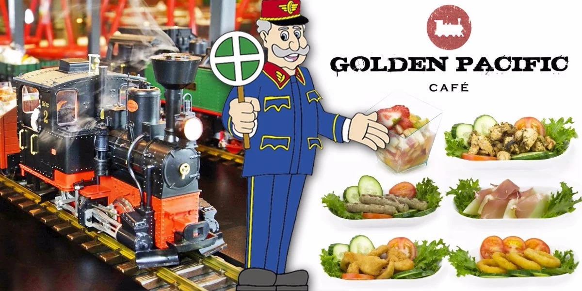 Pořiďte si jízdenky na jednohubky, slané lahůdky či teplé pokrmy. Všechny dobroty v kavárně Golden Pacific Café vám přiveze mašinka po kolejích až ke stolu.