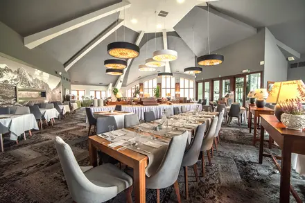 Bufetové snídaně a restaurace se podávají v hotelové restaurace Grand. Určitě si ale zajděte také do restaurace Regionalna, která je jedním z nejznámějších míst na gastronomické mapě Zakopaného. Najdete ji na úpatí malebné hory Nosal a je proslulá svými tradičními chutěmi a domácí atmosférou, vše zasazené do útulného horského stylu.