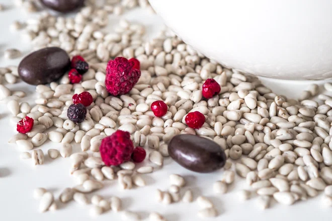 Oříšky, ovoce sušené mrazem, semínka, hraje to barvami a uděláte tím radost dětem i paní učitelce, která se o děti celý rok spolu s vámi starala.