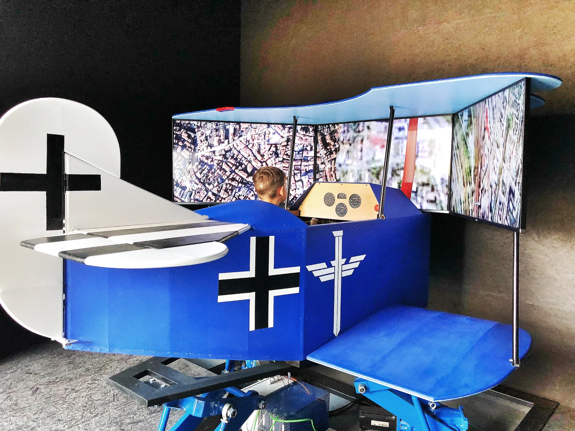 Starší syn se moc těšil na letecký simulátor a naštěstí už výškou dosáhl na pedály a mohl na něj. Zažil zhruba sedmi minutový let nad Prahou, takže jsme i hádali, kde asi je náš dům. Bavilo ho to natolik, že mě potom pořád ještě lámal, aby mohl jít znovu. Já jsem si vyzkoušela gyroskop, na kterém jsem si trochu vyčítala velikost obědu a měla jsem co dělat, abych ho v sobě udržela. Právě na gyroskop by 7leté dítě ještě nepustili, jak mi obsluhující pán řekl. Posledním simulátorem je seskok padákem, který už jsme ani nevyzkoušeli, já se pořád rozmotávala po gyroskopu a syn tam nemohl. Nachází se ve vyhlídkové věži a je to jediné místo v muzeu, které není bezbariérové.
