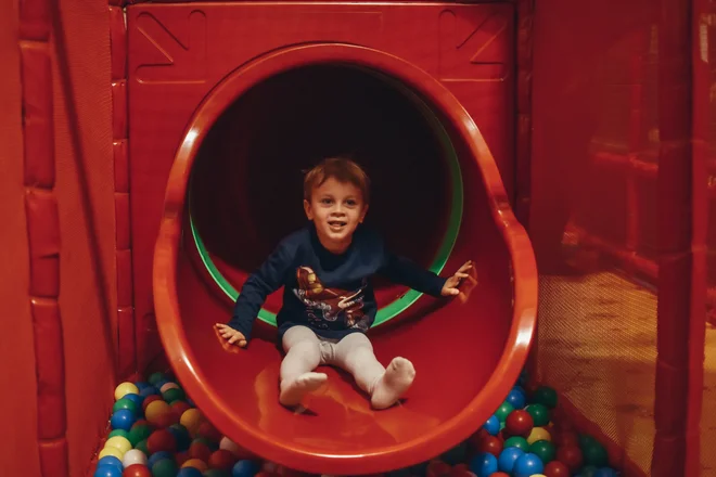 Není divu, že naše děti zde strávily úplně nejvíc času a někdy byl trochu problém je dostat z konstrukce ven 😀 Točitou uzavřenou skluzavku, která ústila do bazénku s balónky, sjeli oba snad 100×.