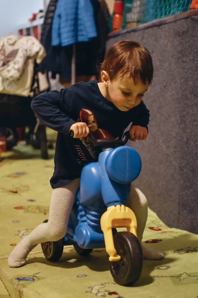 Naše děti strávily hodně času stavěním hradu z velkých měkkých kostek nebo ježděním na odrážedle. U toho jsem na ně musela dávat pozor, protože náš Hugo chtěl sjíždět rampu do takového mezipatra, což se nesmí, aby nedošlo k úrazu.
