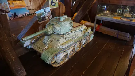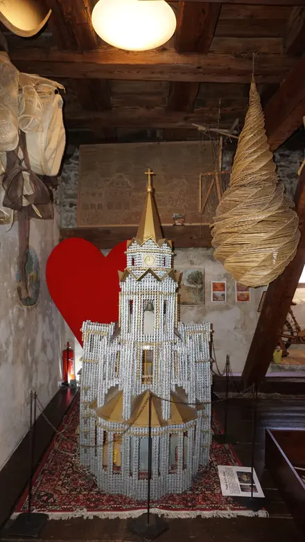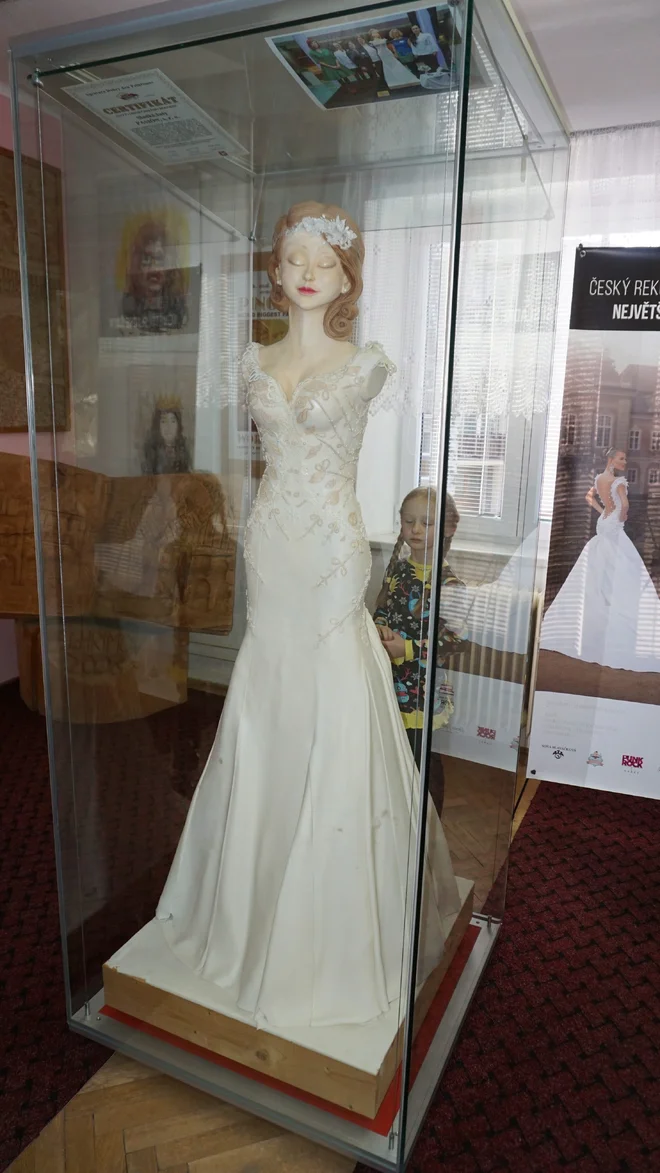 Až se pokocháte zahradou, přejdete do Zlatých českých ručiček. Na začátku potkáte velikánský kaleidoskop, hned vedle něj sedí ohromný Kuky. Dcerka by ho prý nacpala do obrovy postýlky. V dalších patrech se nám líbily největší sladké šaty, kamenné housle nebo třeba šaty z novinového papíru. A expozice představuje i více než 90 unikátních staveb ze zápalek a zápalkových hlaviček, které v průběhu 40 let zhotovil nadšenec Tomáš Korda.