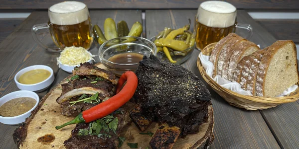 Hovězí a vepřová žebra s přílohami a pitím pro dva