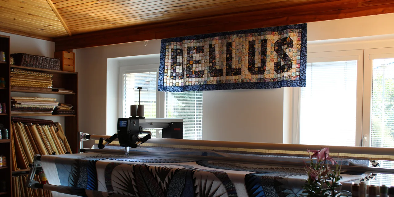 Základy šití patchwork, 6 lekcí po 14 dnech celkem 18 hodin výuky, šijí se jednotlivé techniky vzorů, k dispozici návody – časopisy Švadlenka, prodej látek, prodej šicích strojů a pomůcek, quiltování na zakázku.