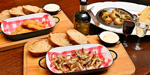 Degu menu s grundlemi, žabími stehýnky a šneky