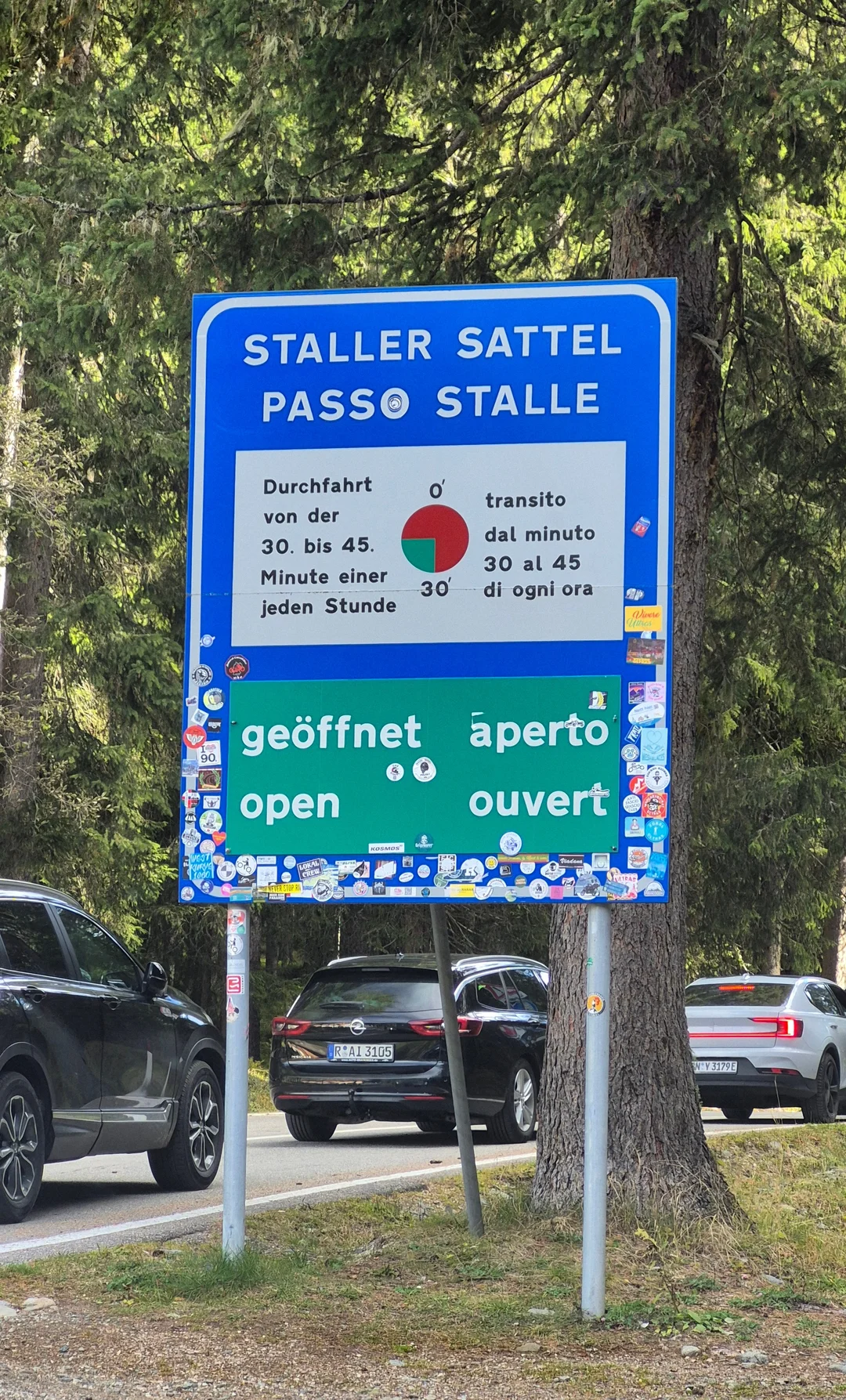 Pozor, průsmyk Passo Stalle je na obou stranách otevřen jen v určitých časech kvůli omezené šířce vozovky a je řízen semafory. Cesta z Rakouska do Itálie je otevřena od 1. do 15. minuty každé hodiny a cesta zpět do Rakouska od 30. do 45. minuty každé hodiny.