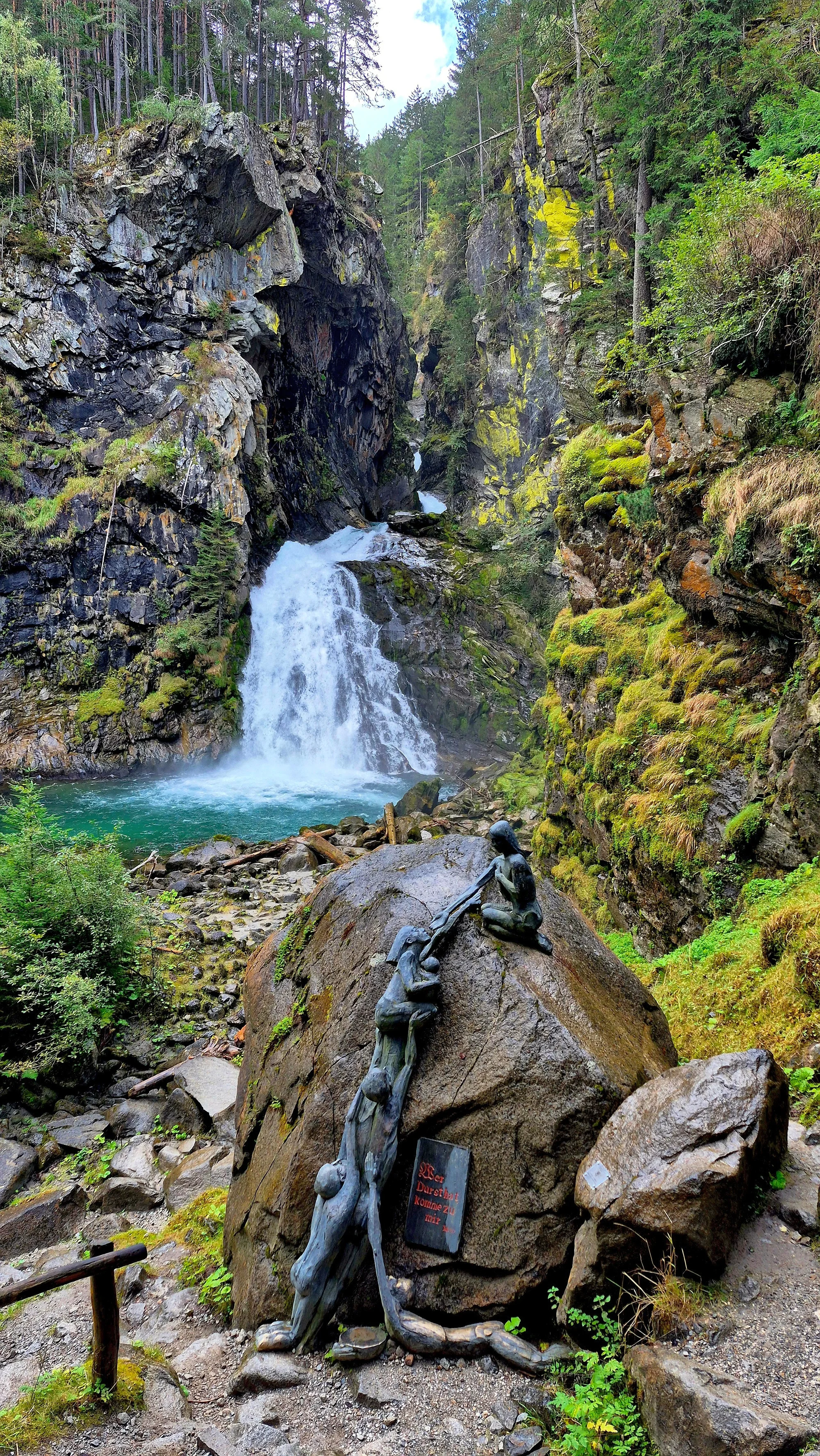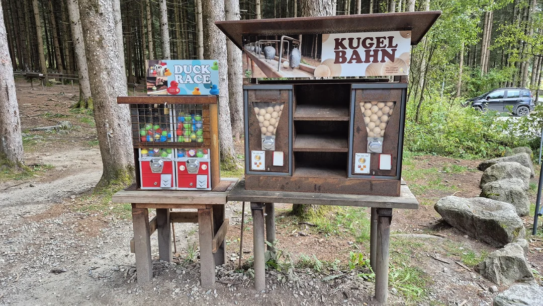 Děti si na tomto místě kromě obdivování vodopádů přijdou na své i díky zábavným atrakcím u Wasserfallbaru. Mohou si zakoupit dřevěnou kuličku a pustit ji po některé z originálních kuličkodrah, které se klikatí po dřevěných konstrukcích, nebo si koupit malou plastovou kachničku a uspořádat s ní závod na vodní dráze pro kachničky. Smích, soutěžení a radost z jednoduchých her zde krásně doplňují majestátní atmosféru okolní přírody.