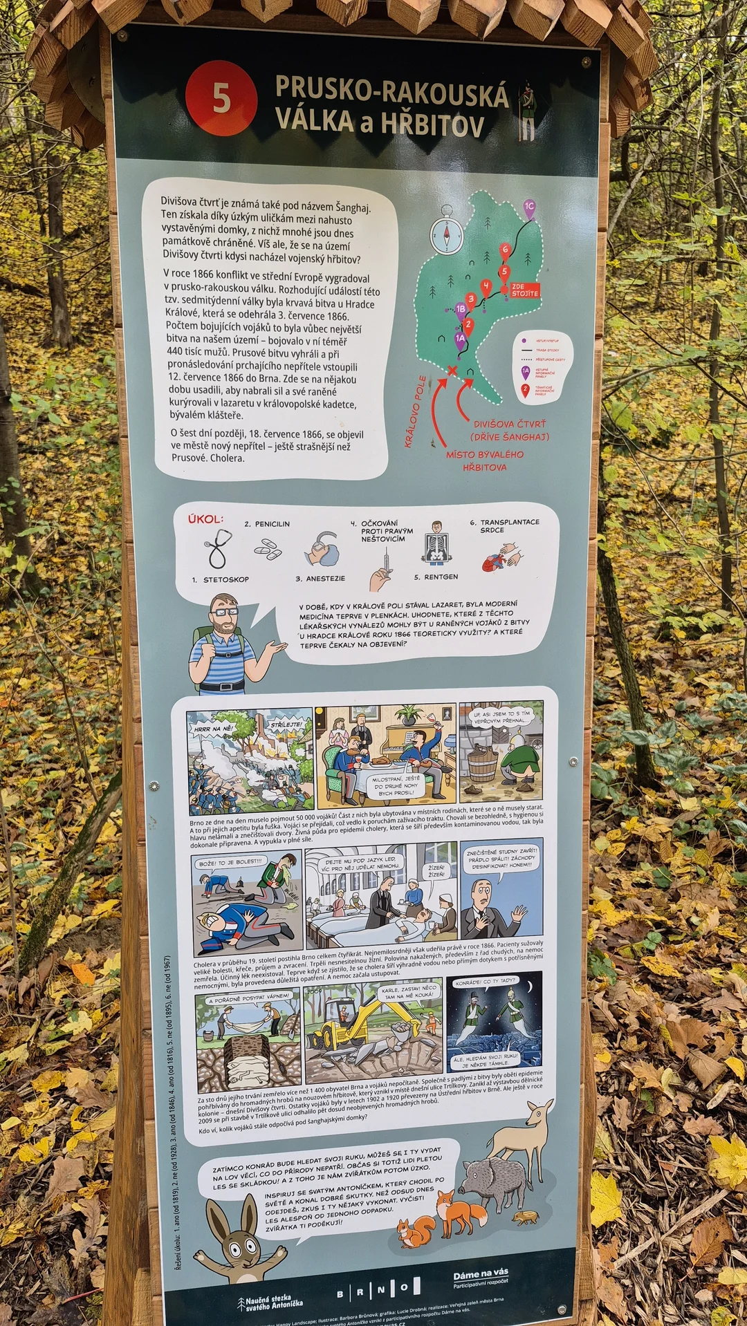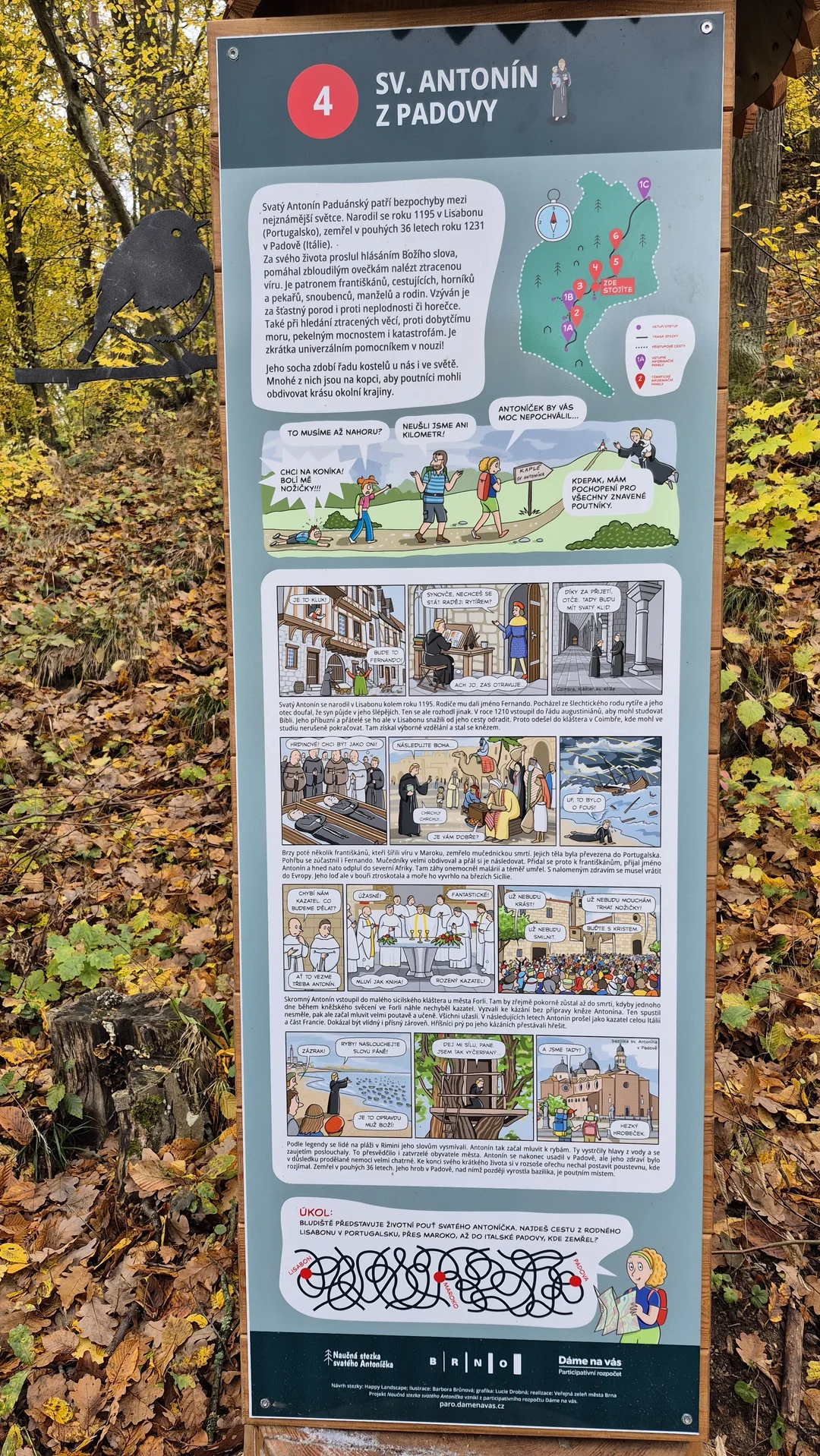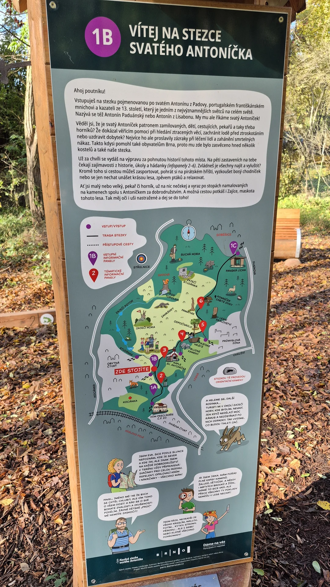 V lesním údolí mezi Soběšicemi, Lesnou a Divišovou čtvrtí v Brně se nachází zajímavá interaktivní naučná stezka. Je pojmenovaná po Antonínu z Padovy, portugalském františkánském mnichovi a kazateli ze 13. století, jenž je jedním z nejvýznamnějších světců na celém světě.