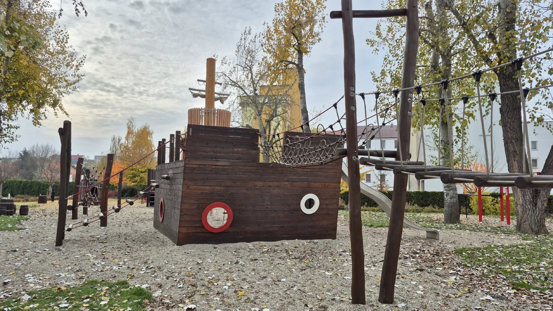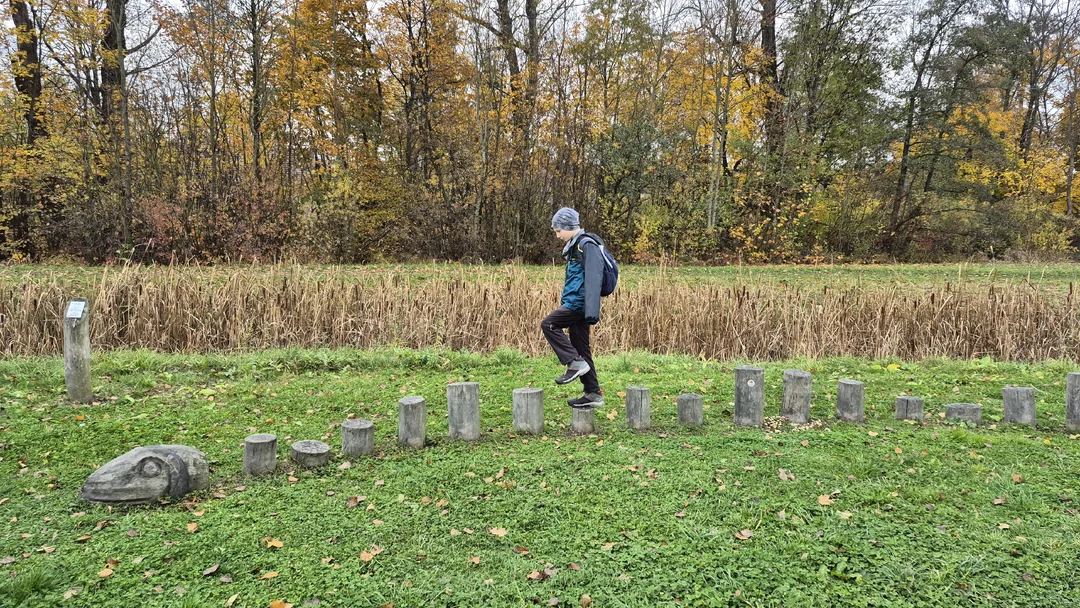 Na stezce nás nejvíce nadchlo hřiště. Děti běhaly od jedné dřevěné lodi ke druhé, zkoušely provazové žebříky a klouzaly tobogánem dolů. Moc se nám líbilo také to, že se zde mohou do dětských let vrátit i dospělí, jelikož je tomu hřiště uzpůsobeno. Hned naproti prolézačkám je navíc výběh se zvířátky. My měli při poslední návštěvě štěstí na králičí miminka, která byla neskutečně roztomilá. Jejich pozorováním by se dalo strávit klidně půl dne.