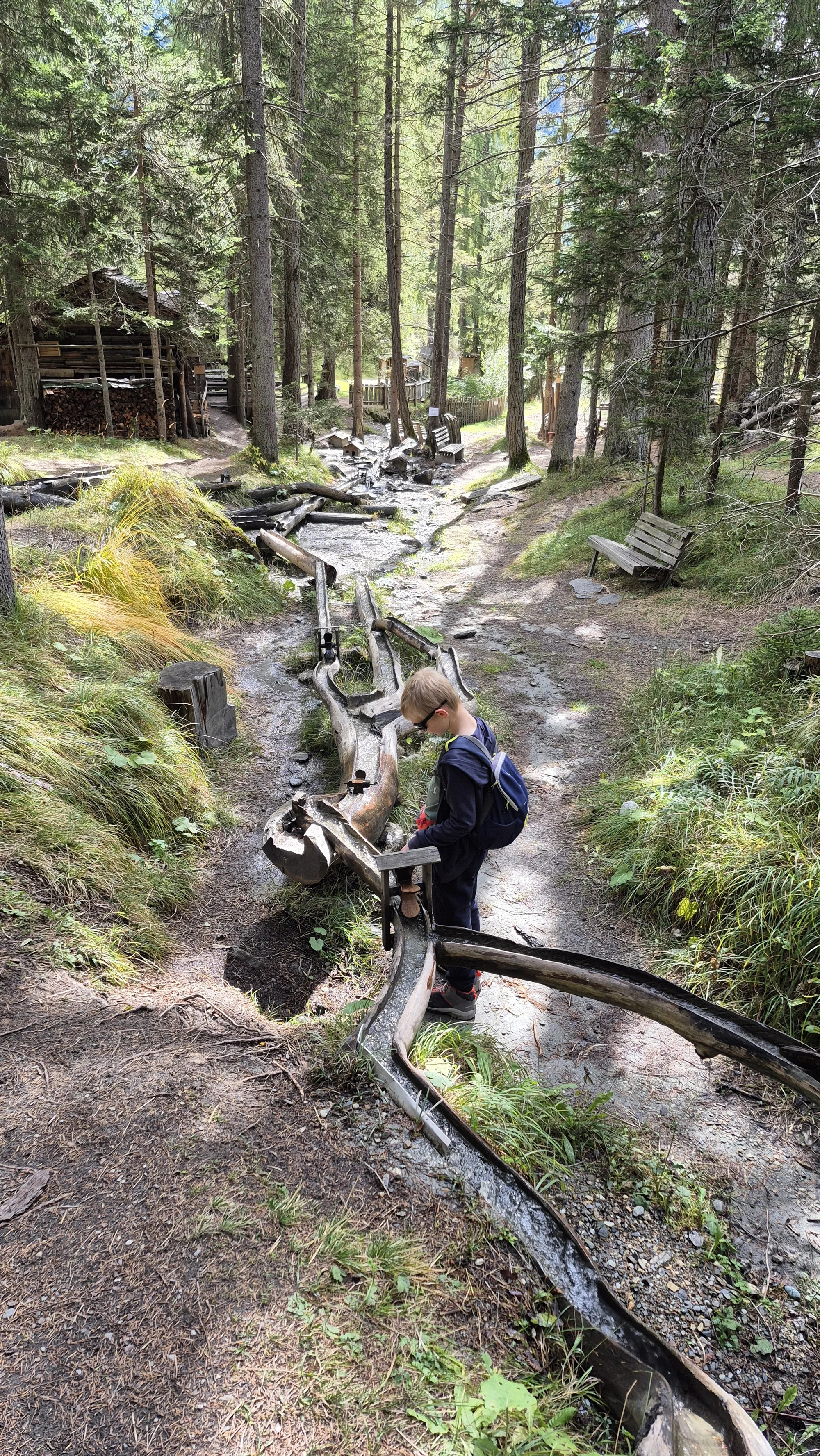 Dětem se nejvíce líbila zastávka s vodními mlýnky a dřevěnými korýtky. My dospělí jsme si užili klid lesa a výhledy na hory v pozadí. Celá trasa působila jako pohádková cesta, kde se příroda mění v hřiště plné nápadů.