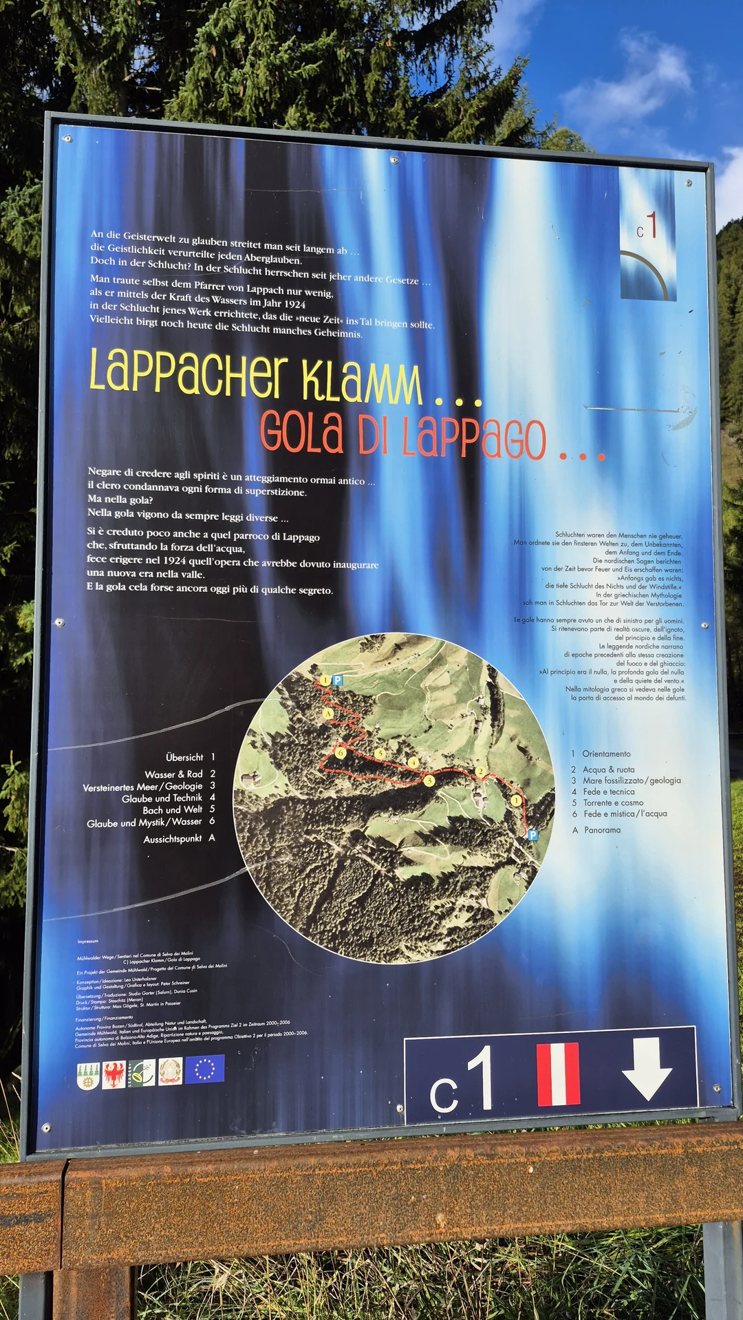Lappacher Klamm (italsky Gola di Lappago) se ukrývá nad malebnou horskou vesničkou Lappach (Lappago) v Jižním Tyrolsku. Tato soutěska, vytvořená divokým tokem vody, patří k nejkrásnějším přírodním místům v okolí údolí Mühlwald. Nabízí fascinující podívanou na sílu vody, která si v průběhu staletí vyhloubila cestu mezi skalními stěnami.