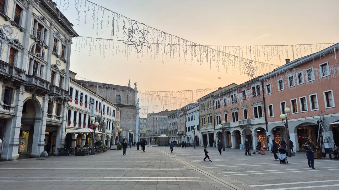 Večer, když se Piazza Ferretto rozzářila světly kaváren a ulicemi se nesla vůně pizzy, jsme si uvědomili, jaké má Mestre kouzlo. Navštívili jsme jej navíc v době, kdy už všude visela vánoční světýlka a dekorace. Dětem dělal radost i kolotoč a malý vláček. Na hlavním náměstí nechybělo ani velké umělé kluziště, které sváteční atmosféru ještě více podtrhovalo.