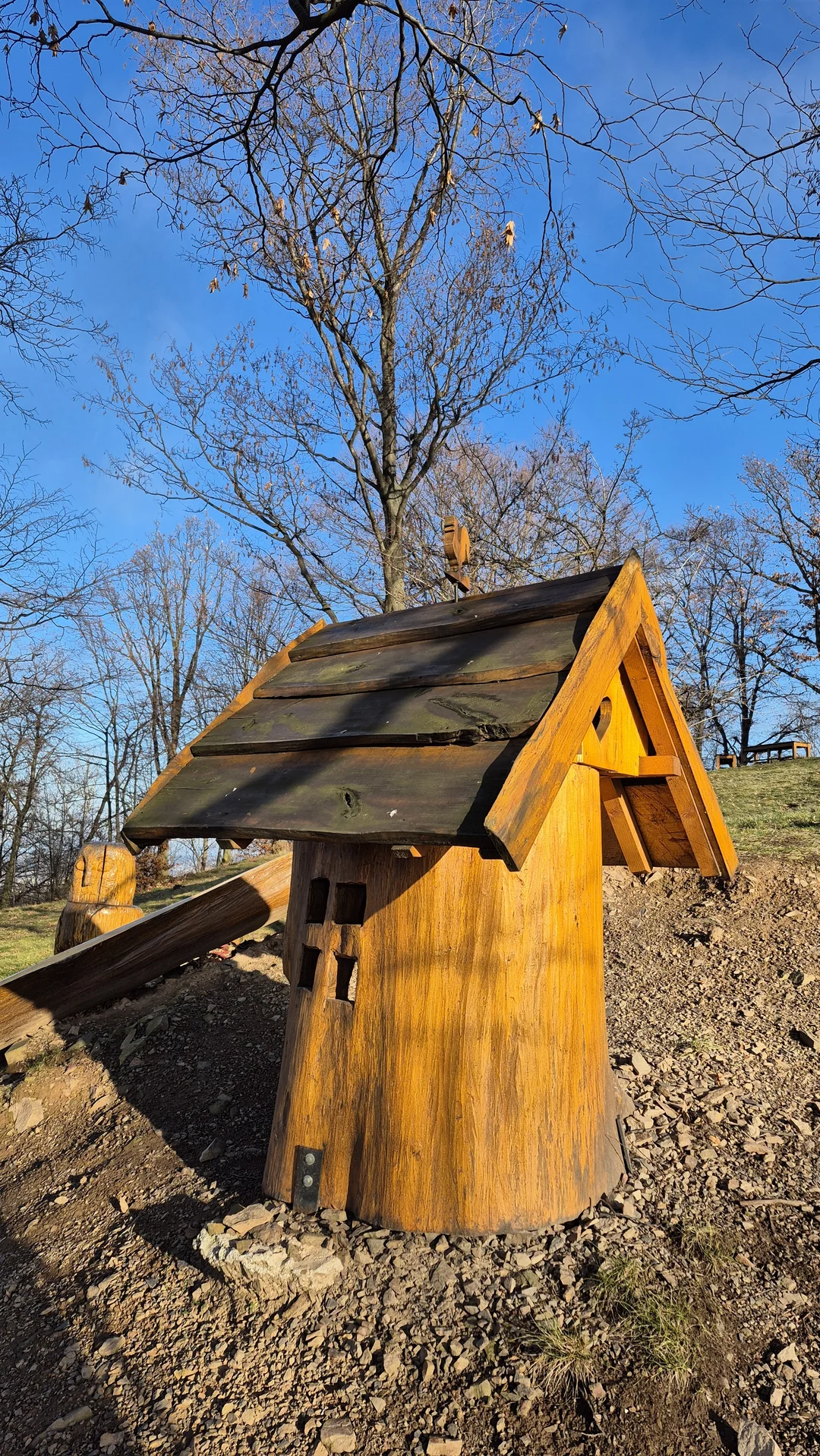My jsme tuto stezku navštívili v prosinci, kdy byl v altánku umístěn krásný velký betlém. Nadchlo nás, jak byly jednotlivé postavičky detailně a s láskou zpracované. Nechyběli hudebníci, roztomilá zvířátka ani tančící pohyblivá dvojice, která celý betlém oživovala a dodávala mu jedinečnou atmosféru.