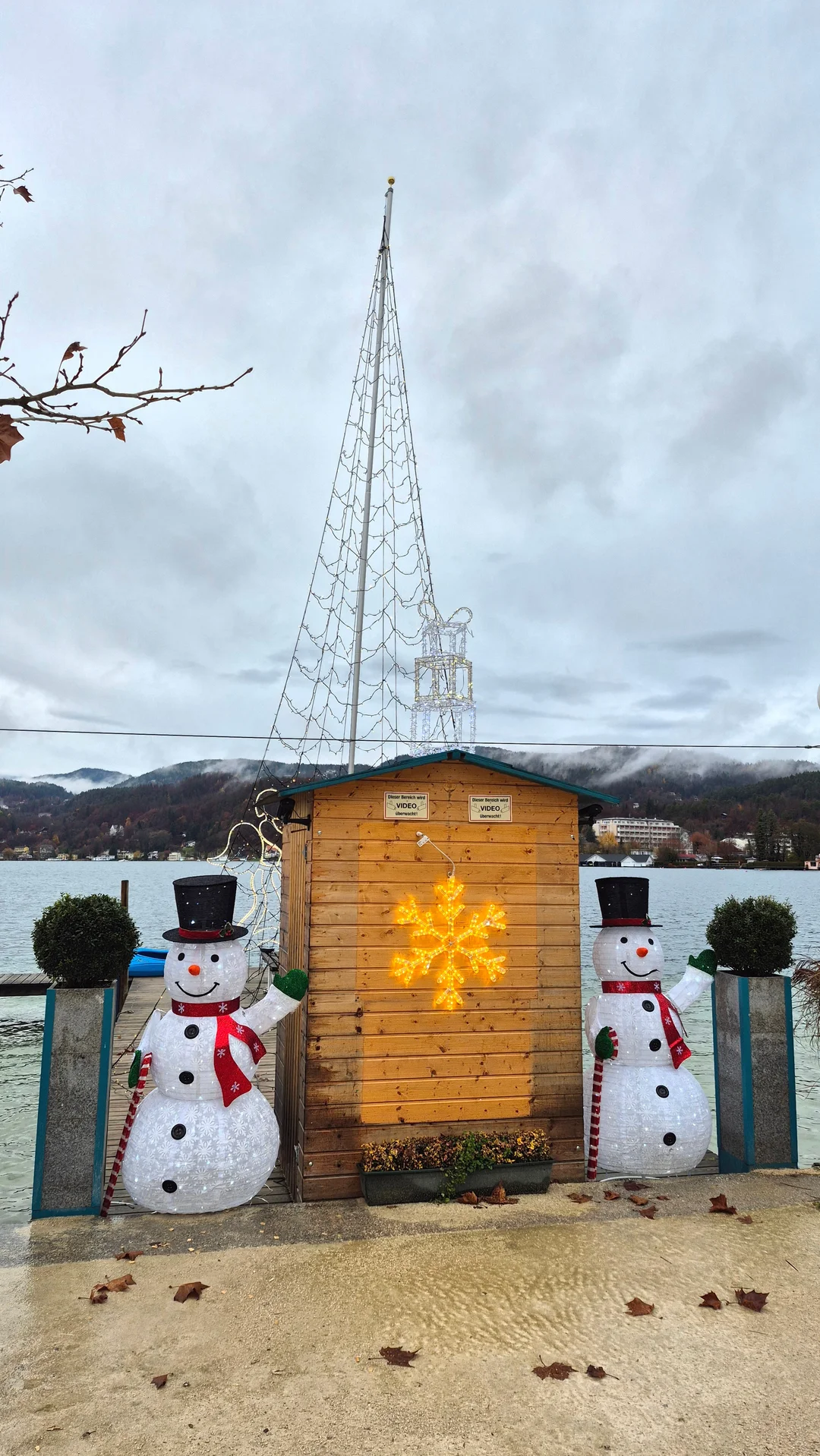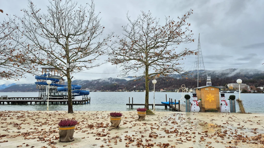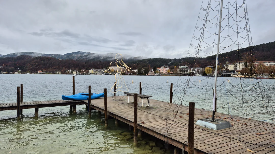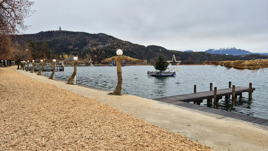 My jsme Pörtschach am Wörthersee navštívili v adventním období, kdy bylo městečko krásně svátečně nazdobeno. Kouzelnou atmosféru dokreslovala také světýlka a vánoční stromeček umístěný přímo na jezeře.
