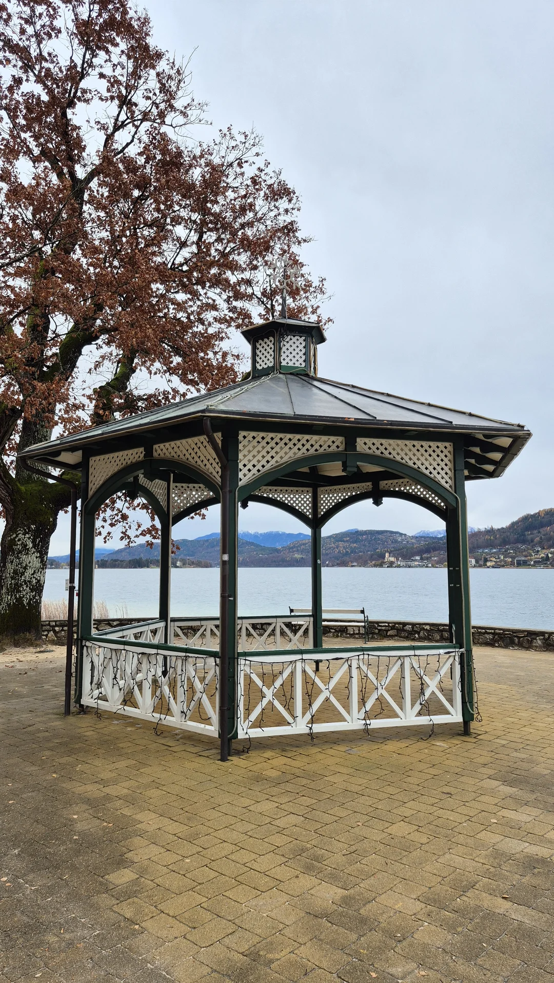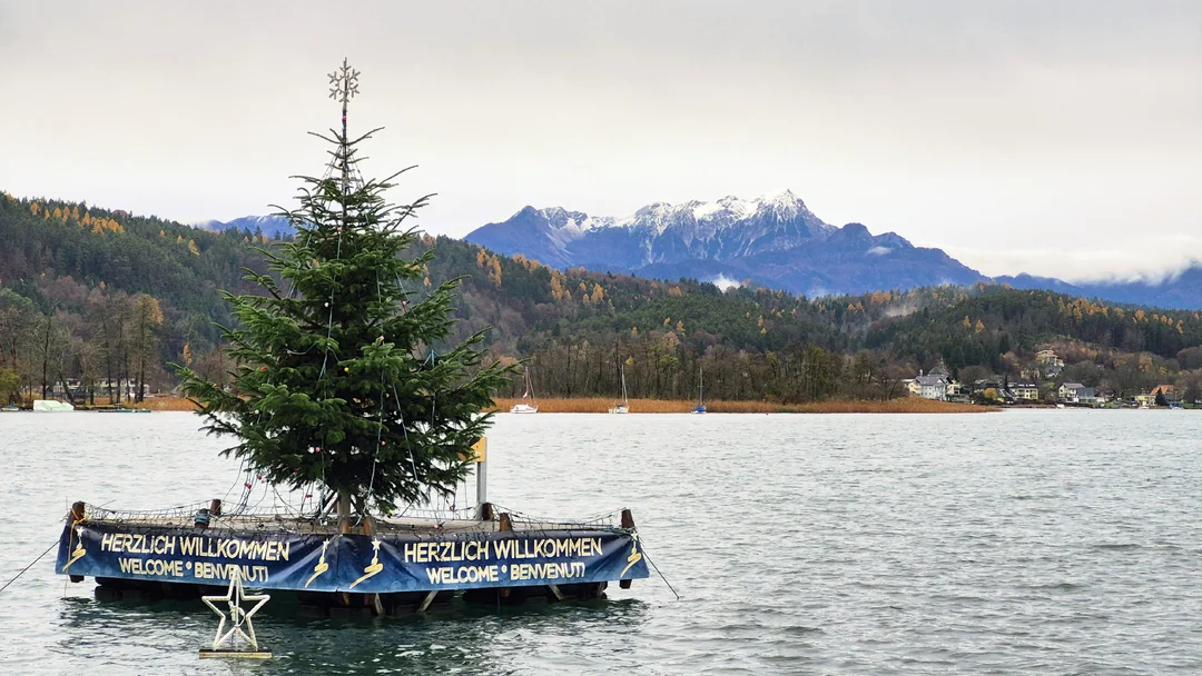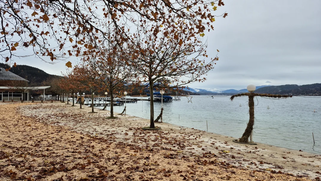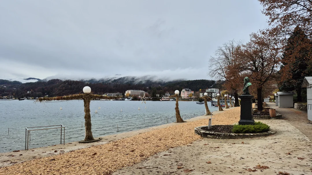 My jsme Pörtschach am Wörthersee navštívili v adventním období, kdy bylo městečko krásně svátečně nazdobeno. Kouzelnou atmosféru dokreslovala také světýlka a vánoční stromeček umístěný přímo na jezeře.