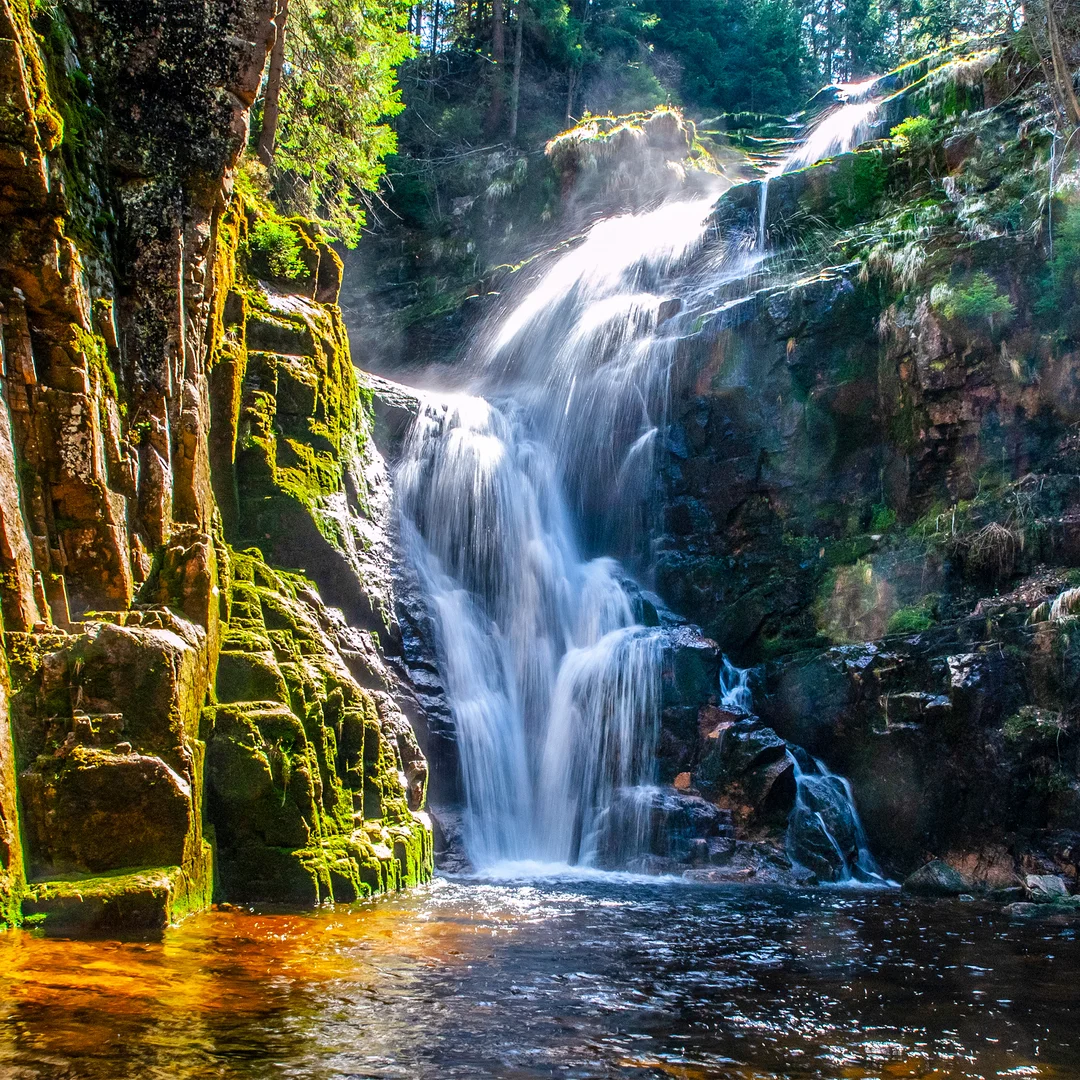 Vyrazte na výlet k nejvyššímu vodopádu v polských Krkonoších. Jmenuje se Kamieńczyka a je jen kousek od centra Sklářské Poruby. Přímo z města vás k němu dovede červená nebo černá turistická trasa. Vodopád měří 27 metrů a tvoří ho tři kaskády, za prostřední se ukrývá jeskyně. Přímo k vodopádu půjdete po kovovém chodníčku a dostanete i bezpečnostní přilbu.