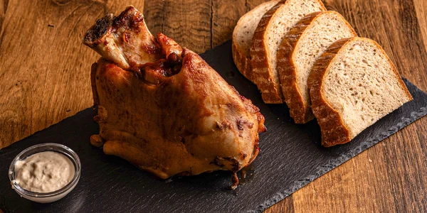 Vepřová žebra nebo koleno s hořčicí, křenem i chlebem